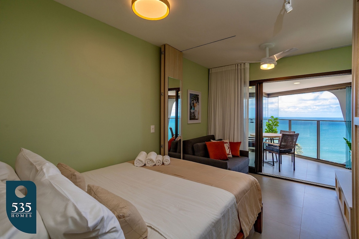 Uma das mais deslumbrantes unidades do Spot Barra, acomoda até 2 pessoas com conforto. Com vista mar, sendo a melhor posição para o Carnaval e com uma excelente vista de toda a Avenida Oceânica até o Farol da Barra. Prédio moderno com piscina, academia, Seven Wonders Restaurante no térreo que serve um delicioso e disputado café da manhã (pago), minimercado, recepção 24h e arquitetura deslumbrante. Ideal para quem busca sofisticação, vista incrível e fácil acesso às melhores atrações de Salvador.