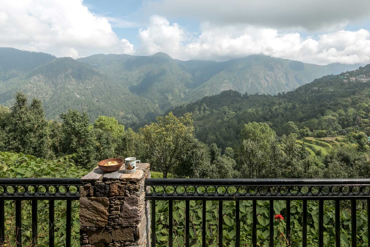 Wake Up in the Clouds – A Private Escape with 180 degree Himalayan Panorama. Pluck an Apple right from the comfort of your Balcony. Tucked away in the beautiful village of Shasbani in the serene hills of Mukteshwar, this private cottage offers an unrivaled front-row seat to the mighty Himalayas. Imagine waking up to seven layers of rolling hills, the sun rising over snow-draped peaks like Nanda Devi and Trishul, and a vast, uninterrupted skyline that stretches as far as the eye can see.
