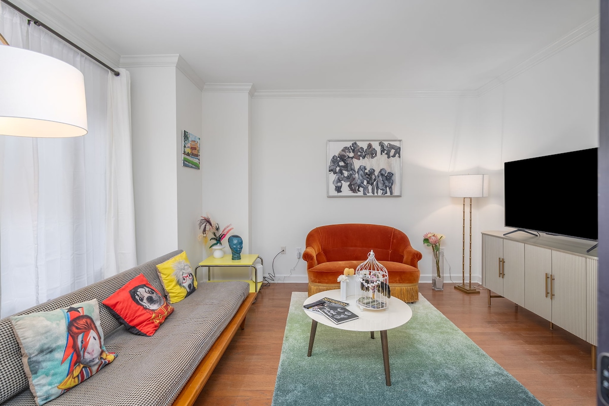 Perfect for friends or families traveling together, this 2-bedroom, 2-bath apartment is an unparalleled Savannah experience. The apartment fronts one of Savannah's iconic squares and is next door to the most charming vintage bookstore in the city. Walk easily to the Savannah's restaurants, Forsyth Park, and all of the downtown attractions. Recently renovated, enjoy the marble bathrooms stocked with luxurious Aesop soaps, freestanding tub, fine Matouk bed linens, and a fully equipped kitchen.
