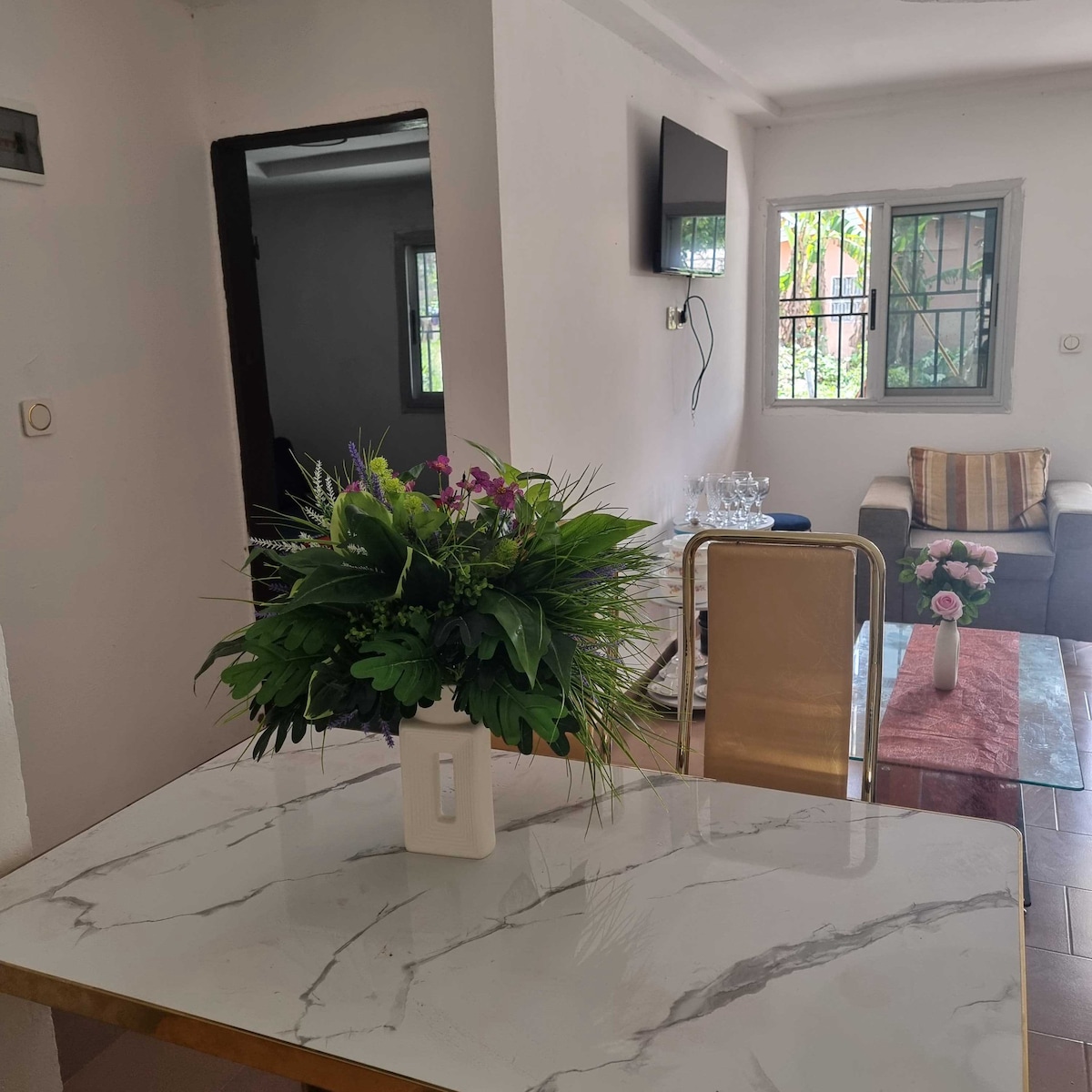 These stylish accommodations are perfect for a couple per apartment Located in the city of Ebolowa, in a building secured by guards day and night (MTN and CANAL PLUS on the ground floor) prepaid meter which allows you to control your energy consumption and in case of power outage a Nomad battery is at your disposal The apartments are connected to a borehole in the event of a water cut. All amenities are at the foot of the building Pleasant stay