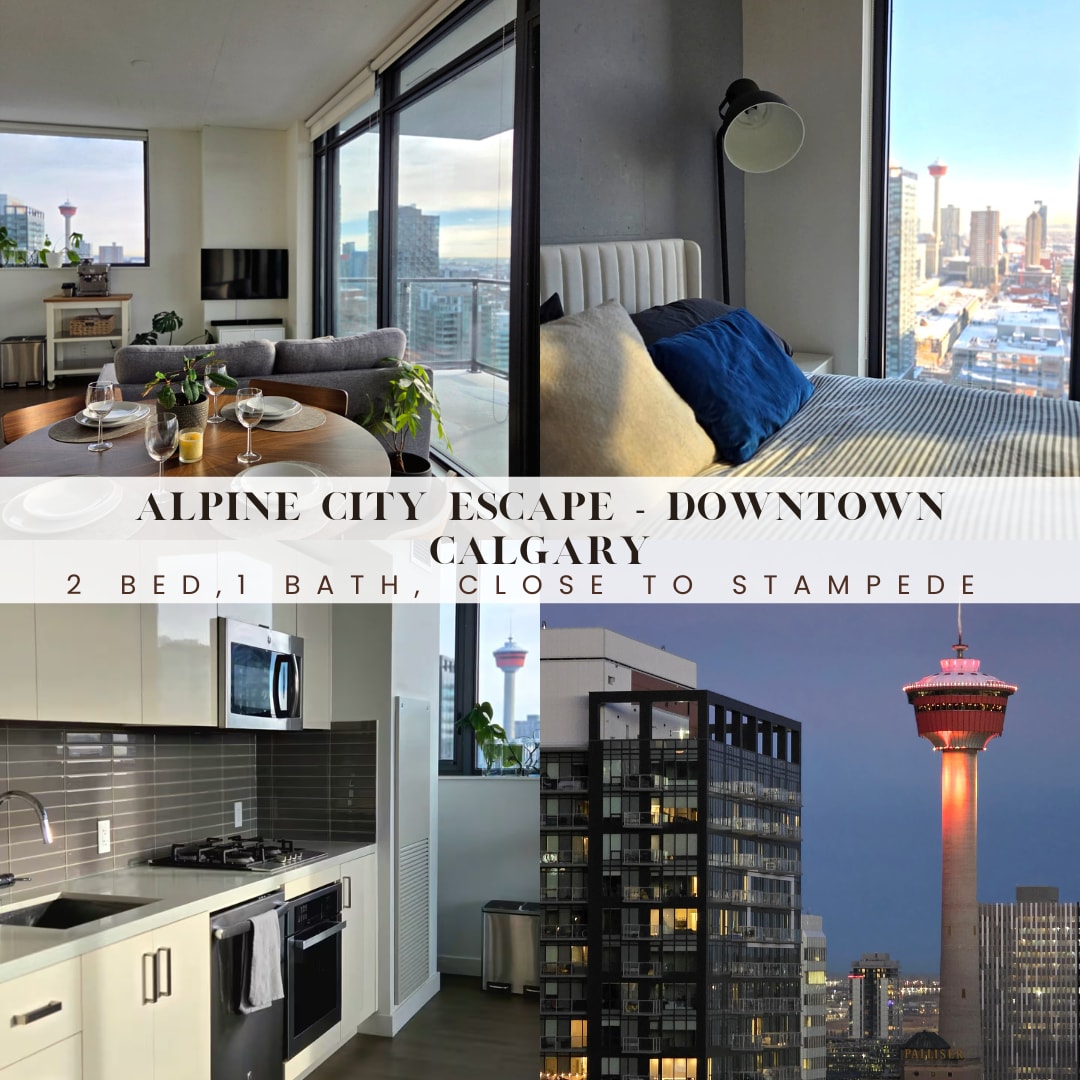 Welcome to your new cozy 1 bedroom / 1 bath luxury condo downtown Calgary! Just steps away from coffee shops, top restaurants, and iconic landmarks like the Saddledome and Calgary Tower. Explore downtown Calgary in comfort and style! ◆ City skyline views ◆ Located in the heart of downtown Calgary ◆ Card games ◆ Large private patio ◆ Community Sky Lounge ◆ Community pool ◆ Gym ◆ High-Speed Wifi ◆ Complimentary Coffee / Tea / In-unit laundry / Toiletries ◆ Fully equipped kitchen