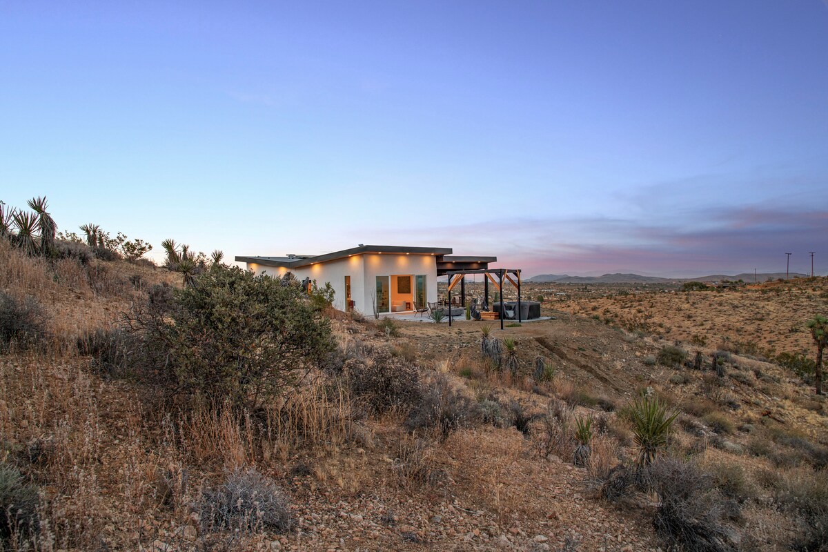 THIS is why you come to the desert. Perched high above Yucca Valley you‘ll find The Edge, our modern & stylish 2 bed/2 bath desert getaway. It's quaintly secluded on a 2.5 acre lot, yet only minutes from town & Joshua Tree National Park. Explore the local attractions, hike from your own backyard or lounge the day away in our luxurious hot tub while marveling at THE BEST VIEW in the High Desert! ✔ 2 King Bedrooms ✔ Full Kitchen ✔Spa ✔Fire Pit ✔Hammocks ✔BBQ ✔ High-Speed Wi-Fi See More below!
