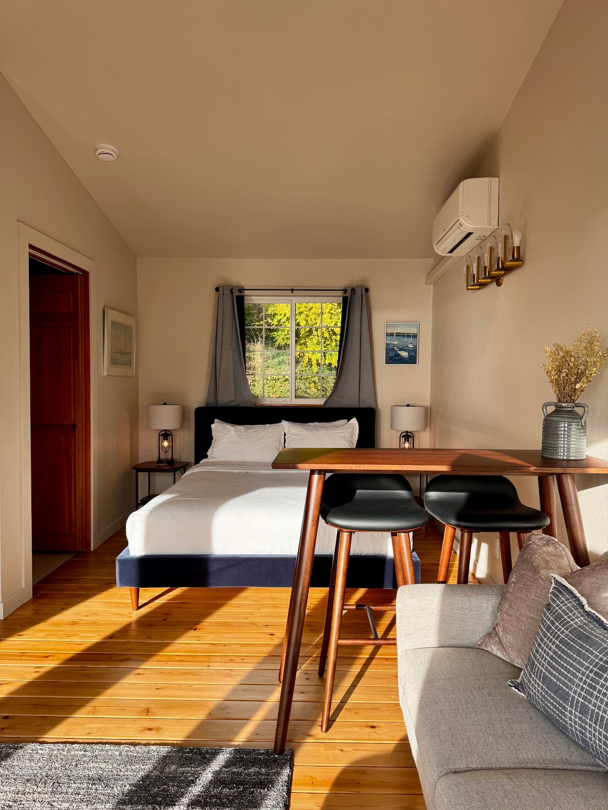 Ocean Cove Inn #8– Ocean-View Studio Overlooking Yachats Beach | Queen Bed | EV Charger | Walk to Town & Tidepools Wake up to the sights and sounds of the Oregon Coast at Ocean Cove Inn #8, a cozy studio with sweeping ocean views just above the beach where the Yachats River meets the sea. This light-filled retreat is perfect for couples or solo travelers looking to relax, recharge, and explore everything this vibrant coastal village has to offer — all within walking distance. The Space * Stylish studio layout with queen-size bed and beachy décor * Large windows with panoramic views of the Pacific * Mini fridge, microwave, coffee maker (Keurig) * Cozy sitting area with smart TV and reading nook * Private bathroom * Free EV charging on site * On-site parking and easy self-check-in Highlights * Overlooks the beach, tidepools, and scenic river mouth * EV charging available — great for road trippers * Located in the heart of town — just steps to restaurants, coffee shops, galleries, and the shoreline * Ideal for peaceful mornings, storm watching, and sunset strolls * High-speed Wi-Fi for remote work or streaming * Shared outdoor space with seating to enjoy ocean breezes * Free shared laundry room (washer and dryer) Walk to the Best of Yachats No car needed — you're just a short walk from these local favorites: * Luna Sea Fish House – fresh-caught seafood and casual coastal charm * Drift Inn Cafe - an eclectic and unique style dining experience with fresh local dishes for breakfast, lunch and dinner. Directly next door! * Ona Restaurant & Lounge – elevated Pacific Northwest cuisine with river views * Bread & Roses Bakery – artisan pastries, coffee, and breakfast bites * Green Salmon Coffee Co. – quirky café with organic drinks and vegan options * Yachats Brewing + Farmstore – wood-fired pizzas, craft beer, kombucha, and a local hangout vibe * Le Roy’s Blue Whale – classic diner fare and hearty breakfasts * Outta Gas Pizza – hidden gem with creative pies and laid-back atmosphere Nearby Adventures * 5-min walk to Yachats State Park * 10-min drive to Cape Perpetua Scenic Area, Thor’s Well & Devil’s Churn * Easy day trips to Florence, Heceta Head Lighthouse, or Newport’s aquarium and harbor Essentials * Sleeps 2 guests max * Check-in: 4pm | Check-out: 10am * Quiet hours: 10pm–8am Come enjoy the peace, views, and walkable charm of Yachats from the comfort of your own private perch above the Pacific. Whether you’re beachcombing, dining out, or just watching the tides roll in — Ocean Cove Inn #8 is your perfect coastal base. Book now and treat yourself to a true Oregon Coast experience!