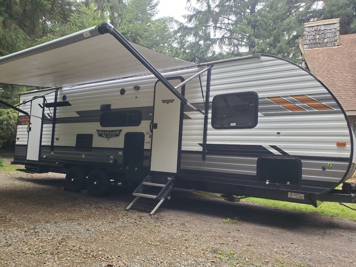 Welcome to the Tumalo hobby farm! Here you will have your own 42ft 2019 Forest River RV, located on our lovely Tumalo property. Nestled in the midst of goats and chickens, this will be a perfect landing for work or play. Enjoy the mountain views and bright stars after your day out adventuring around Central Oregon. Within close driving distance to Bend, Sisters, Redmond, Mt Bachelor and Hoodoo. This RV is fully hooked up with power, water, heat, A/C, internet, and is ready for you.