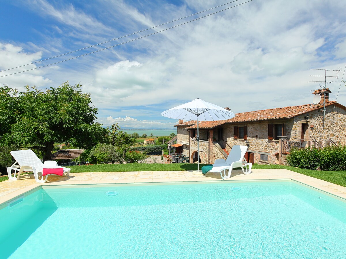 "IL PODERACCIO" is a typical stone farmhouse located on the hills surrounding Lake Trasimeno, immersed in beautiful Mediterranean vegetation. The building is spread across two floors. The pool and garden frame the whole. The swimming pool is open from May 1st to October 15th. Please note that following the COVID 19 emergency, all the directives required by the legislation have been adopted for cleaning and sanitizing the house.