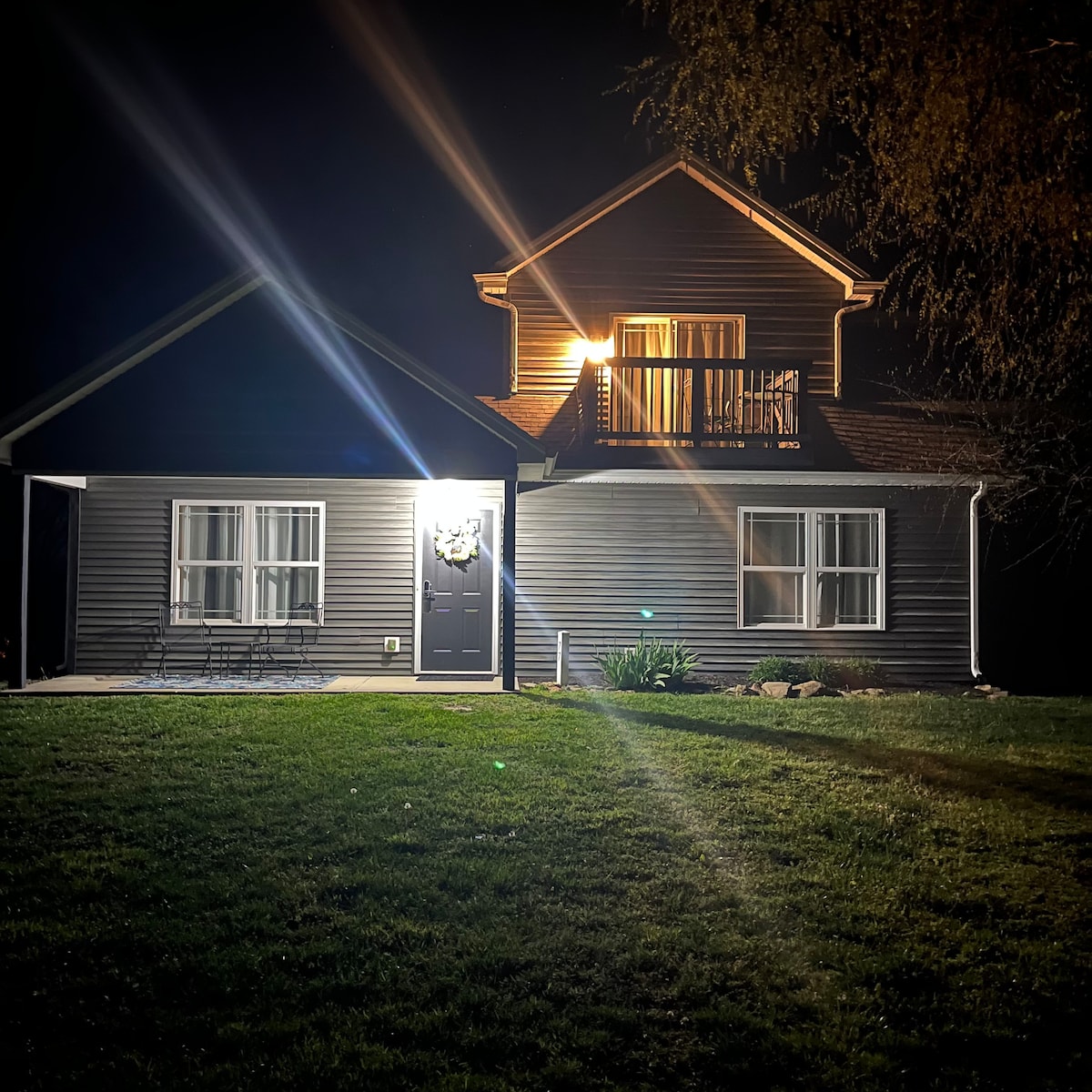 Newly renovated cottage located in the country. Enjoy amazing views from the porch while enjoying the outdoor patio. Fully furnished to make your stay comfortable and delightful. Memory foam mattresses for wonderful sleep and a well equipped kitchen for cooking. Enjoy exploring the walking trails, creek and the 80 acre property while you stay. Stocked Fishing Pond Check out our other listing too, Bourbon Country Cabin, same property.