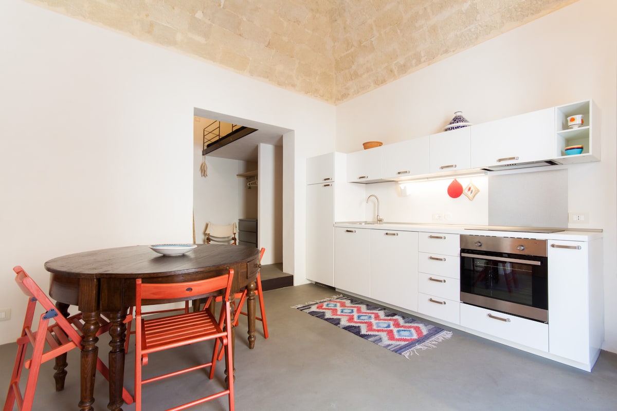 Brand new studio apartment within walking distance of the sea and the center. Located on the first floor of Casetta Maremè, "MAREME'SU" has a lovely terrace for relaxing. The studio is accessed from a shared staircase with the nearby apartment, the only shared space. You will find a kitchenette with induction stove and the possibility to prepare breakfast, a double bed and a bathroom with shower. Ideal for a couple with a small child.