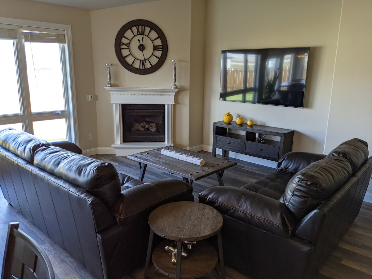 This home will keep the good times rolling as it features a fully finished garage for extra living space, a foosball table, ping pong table, and multiple large flat screen TVs. Large backyard and a cozy home to relax with friends/family. Located within 2 miles of The Arnolds Park Green Space and Amusement Park! ** HAVE AN EXTRA LARGE GROUP TO ACCOMMODATE? A “sister” property is located within walking distance and can sleep up to 12. Message for details!