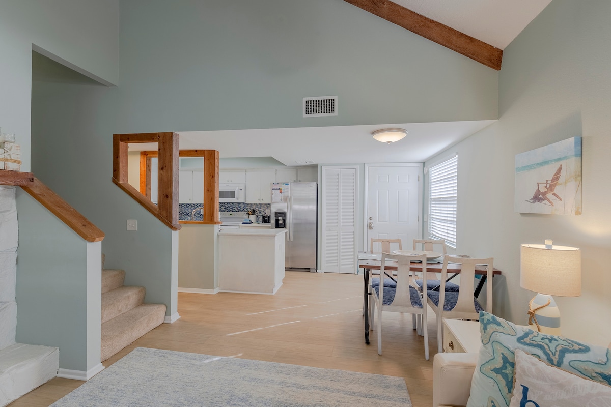 Enjoy semi-private beach access just one block away—a quick 3–5 minute walk from the townhouse—as well as 10+ restaurants, coffee and ice cream shops, boat rentals, parks, playgrounds, a water park, brewery, and nature preserves and trails all within walking distance. Make yourself at home in our cozy three-story townhouse. Spend your days relaxing at the beach, kayaking, exploring local parks and preserves, playing putt putt golf, and more. Our homes are child and infant-friendly!