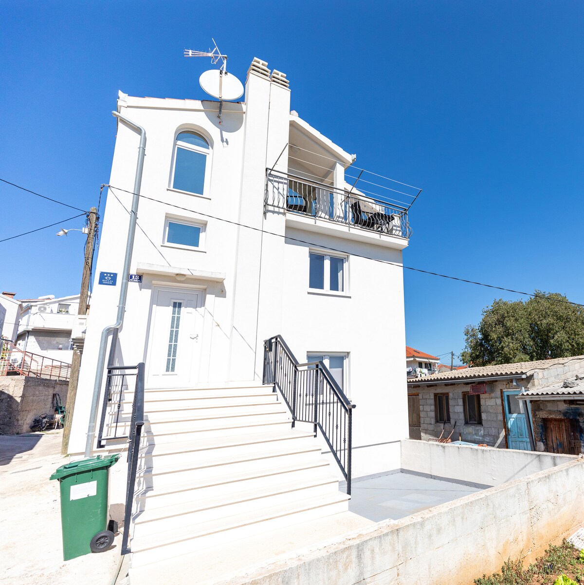 The + of the house: * Completely renovated in 2022/23 * 1 minute by walk from the sea * 40 m² roof terrace offering a 360° panorama * View on the Adriatic Sea and the islands * View on the Veli vrj mountain peak * Quiet environment * Historical village * House built 700 years ago * All shops within walking distance * Leisure center nearby * Only 13 min by car/bus from the international airport of Split * 2 min by walk from the bus stop line 37 serving Split, Trogir and the airport