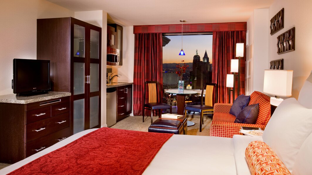 ★★★ Seamless arrival and check-in with complimentary valet, bell desk luggage assistance, concierge & front desk check-in ★★★ Experience a spectacular view of the Las Vegas Strip from your private 550-square-foot Signature Studio Suite ★★★ Enjoy FULL Hotel Resort amenities & NO resort fees (savings of over 43$ per night) ★★★ Reach the Raiders Allegiant Stadium or the Convention Center in under 5 minutes. WELCOME TO FABULOUS LAS VEGAS!