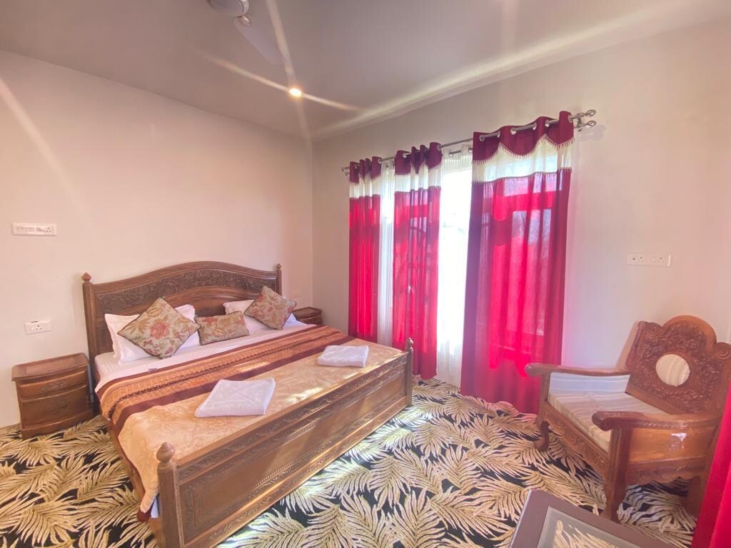 Spacious guest house in Kashmir featuring 4 king-size bedrooms and a luxurious suite, each with private bathroom, smart TV, Wi-Fi, and coffee maker. Guests can book the entire home for exclusive use or choose individual rooms for a cozy stay. Relax in the shared lounge, dining area, or serene garden, perfect for enjoying fresh mountain air. Ideal for families, groups, or solo travelers seeking comfort, convenience, and a peaceful retreat in a stunning natural setting.