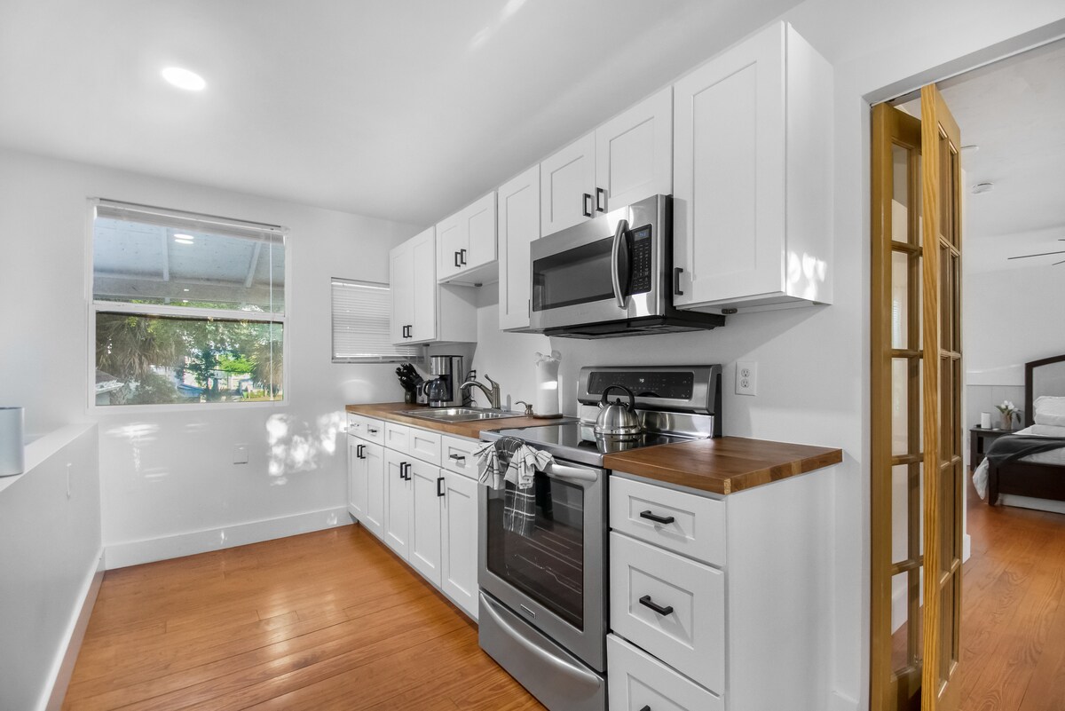 Sea-Glass Bungalow Tropical Peaceful Retreat. All are welcome here! Feel your worries melt away as the tropical breeze rustles the private garden, enjoy unique features such as hanging hammocks & screened-in porch. This unique space has a style all its own. Artistic accents highlight this converted garage into a modern studio.. When you’re not relaxing in this tropical oasis, explore the Lighthouse, Alligator Farm & Bird Watching, White-Sand BCHs, The AMP & DWTN all this< 1mi away.