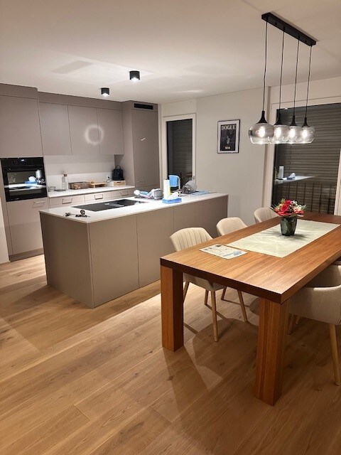 We rent a very nice, bright and cozy attic apartment with 2 bedrooms with 2 double beds, niche with bed and sofa bed, kitchen with dining table, office, bathroom and toilet. The apartment is located right next to the train station. Restaurant, bakery with cafe, Coop (open 7 days) right next door. To Zurich 20 min. We, the host family, live on the first two floors. In the beautiful Zurich Oberland, you have many excursion destinations and local recreation areas right at your doorstep. View of the mountains.