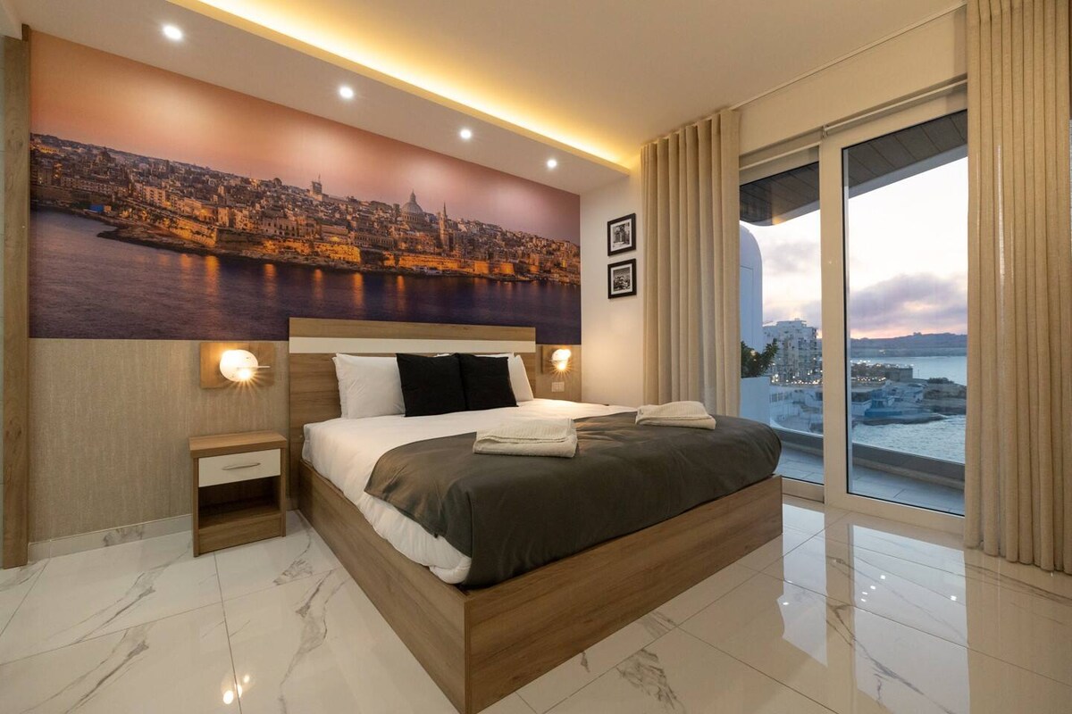 Immerse yourself in luxury at this 6th-floor seaside escape in Malta. Unwind on the front terrace while soaking in the distant vistas. Fully private accommodation features 2 spacious double bedrooms, 1 en-suite, furnished with premium orthopedic mattresses for ultimate comfort. Indulge in top-tier amenities including super-fast WiFi, 3 AC units, 3 Echo Dots for Home Automation and Amazon Music Unlimited. Enjoy a well-deserved rest in this exclusive retreat in one of Malta's best touristic spots.