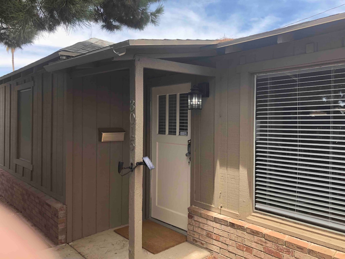 The Hill's Bungalow, a wonderfully charming casita with a separate private entrance and parking. Walk out in the morning, watch the sunrise and sit on the private back porch for sunset. Custom finishing's and large windows opens to a gourmet kitchen/ large common room, a half bath, 50" TV and high speed wifi. A sleep number king bed with a lavish full bath, makes relaxing easy. Walking to hiking trails, a 2 minute drive to FH downtown, 10 minutes to Scottsdale, or 35 minutes to Sky Harbor.