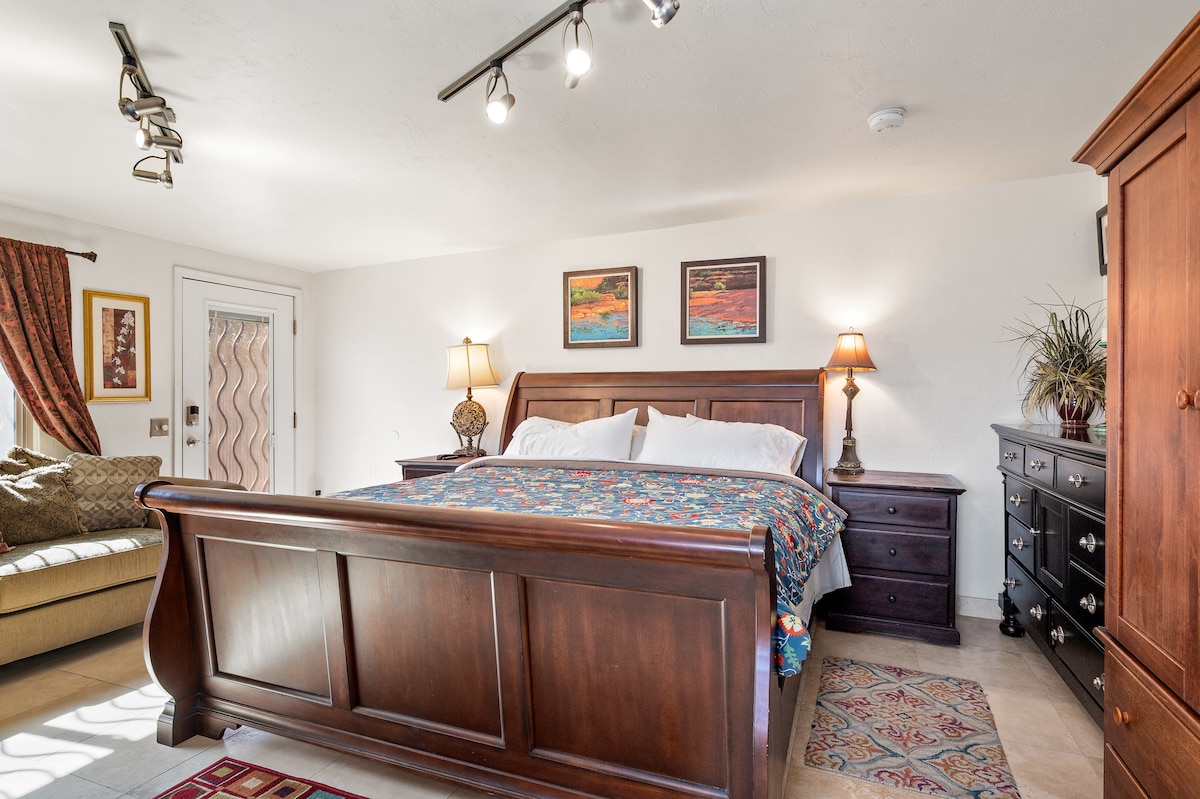 Cozy and charming, this private guest house sits in the heart of Tucson and makes a perfect home base during your visit to the Southwest! Studio layout is spacious and relaxing for 2. Fully equipped kitchen, bathroom with walk-in shower, Ghostbed mattress, and comfortable work space/fast wifi for those of you working remotely. Easy access to airport, U of A, Saguaro NP, shopping, and hiking trails. Coded entry makes it a breeze to come and go, no shared keys. Come rest at the Knest!