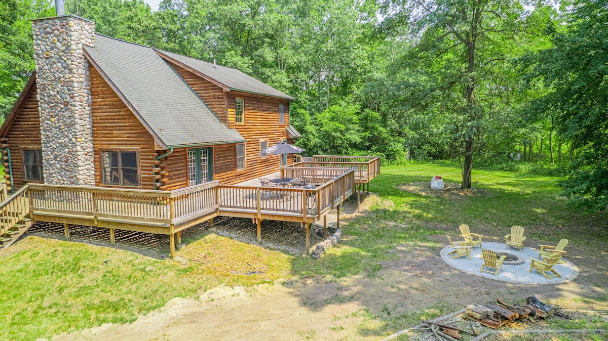 Rustic Log Cabin sitting on over 7 private, wooded acres of land located MINUTES away from BOTH Lake Maxinkuckee and Bass Lake, makes you feel far from Indiana! The cabin features 4 bedrooms, 2 bathrooms, 10 beds, a crib, 2 pull-out couch beds, 3200 Sq. Ft, HOT TUB, fire pit, BRAND NEW finished basement. The basement offers a game room with pool table & shuffle board, TV/Media Room, and a 4th bedroom. This home is the perfect spot for a private getaway, but close enough to local attractions.