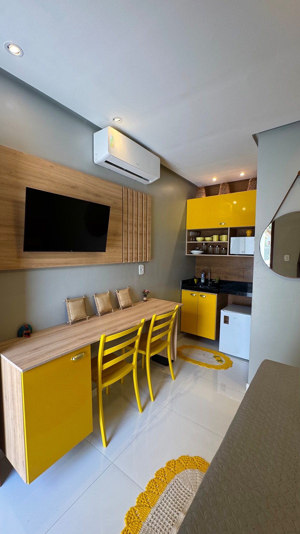 Compact, new, quiet and well-located. The Yellow Alter Suite is located on a quiet street and close to everything, with easy access to a pharmacy, markets, bakery, banks and other useful establishments. The square, restaurants, and other points can be visited on foot (5 minutes), as well as access to Ilha do Amor, which is simply beautiful. The suite is new and fully equipped. Bed linen and bath towels are included in the accommodation.
