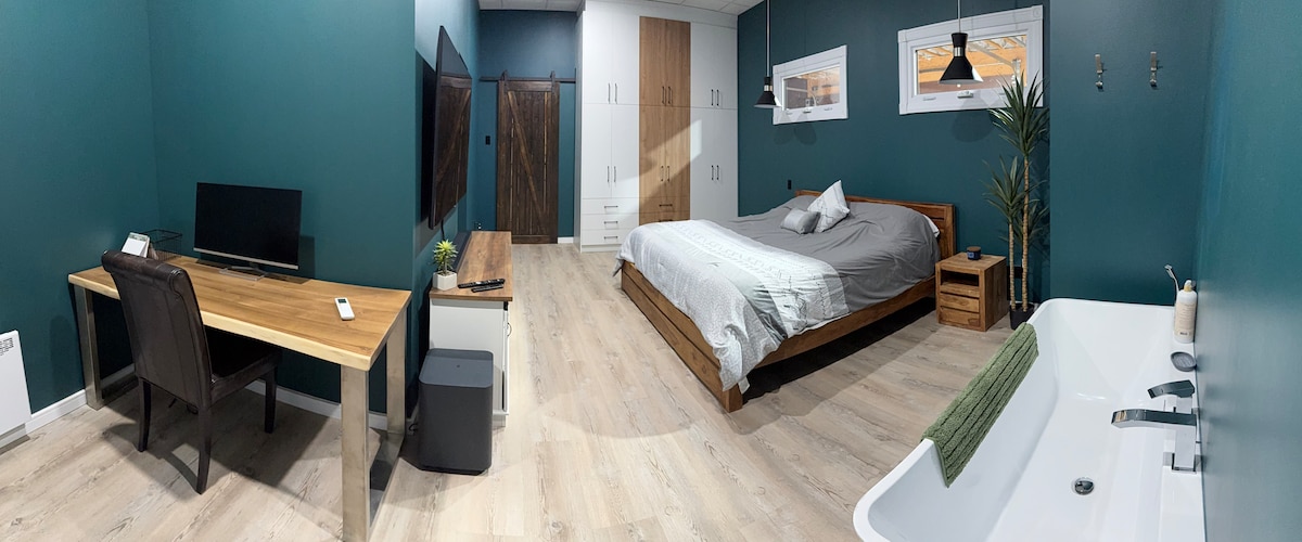 For outdoor lovers, tourists and temporary workers, this apartment with its intimate bedroom, fully-equipped kitchen and bathroom is ideal. Located in Old Chicoutimi, the bright, quiet apartment is at the back of a recently renovated century-old house. Fibe Bell TV. Air conditioning / heat pump Parking included. Short stays (2 to 30 days) Discounts for 7 days or more. CITQ permit : 310676