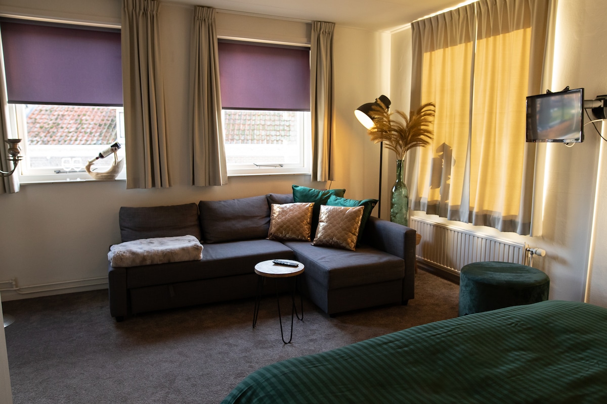 B&B Huiskamer van Vollenhove is located in a characteristic 1900s city farmhouse in the middle of beautiful Vollenhove. In the old stable, three cozy and spacious guest rooms have been built (2022). The rooms have a cozy sitting area, new box spring beds and your own luxury bathroom with toilet, vanity and walk-in shower. Of course, a nice breakfast is included. And after a wonderful day of cycling or hiking, you can enjoy a snack and drink in the living room.