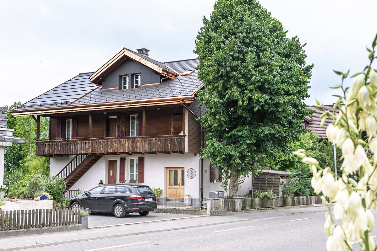 Nordic furnished B&B in the renovated 100-year-old former farmhouse. 3 sled dogs live in the conservatory & 2nd floor. The apartment on the first floor has: a bedroom overlooking the mountains | children's room/library | infrared sauna | dining/living room with Swedish stove & sofa bed | kitchen | small bathroom. The room height in the bathroom, in the children's room and in the bedroom is 1.83 m. The other rooms are of normal height. The PanoramaCard Thunersee (guest card) gives you discounts.