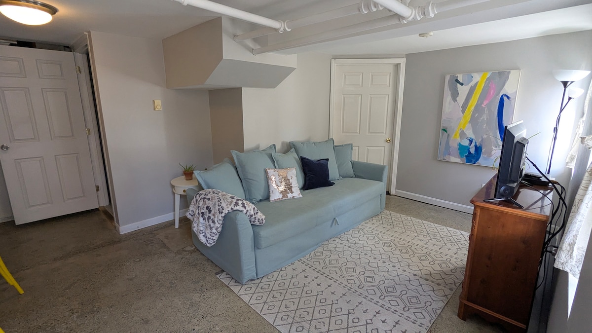 New couch! New towels and linens! Fresh paint! New flooring coming soon. This private apartment is part of my home but has a separate entrance, full bath, living room and private bedroom. We're in a family neighborhood close to the city, and very convenient for those visiting with a car.