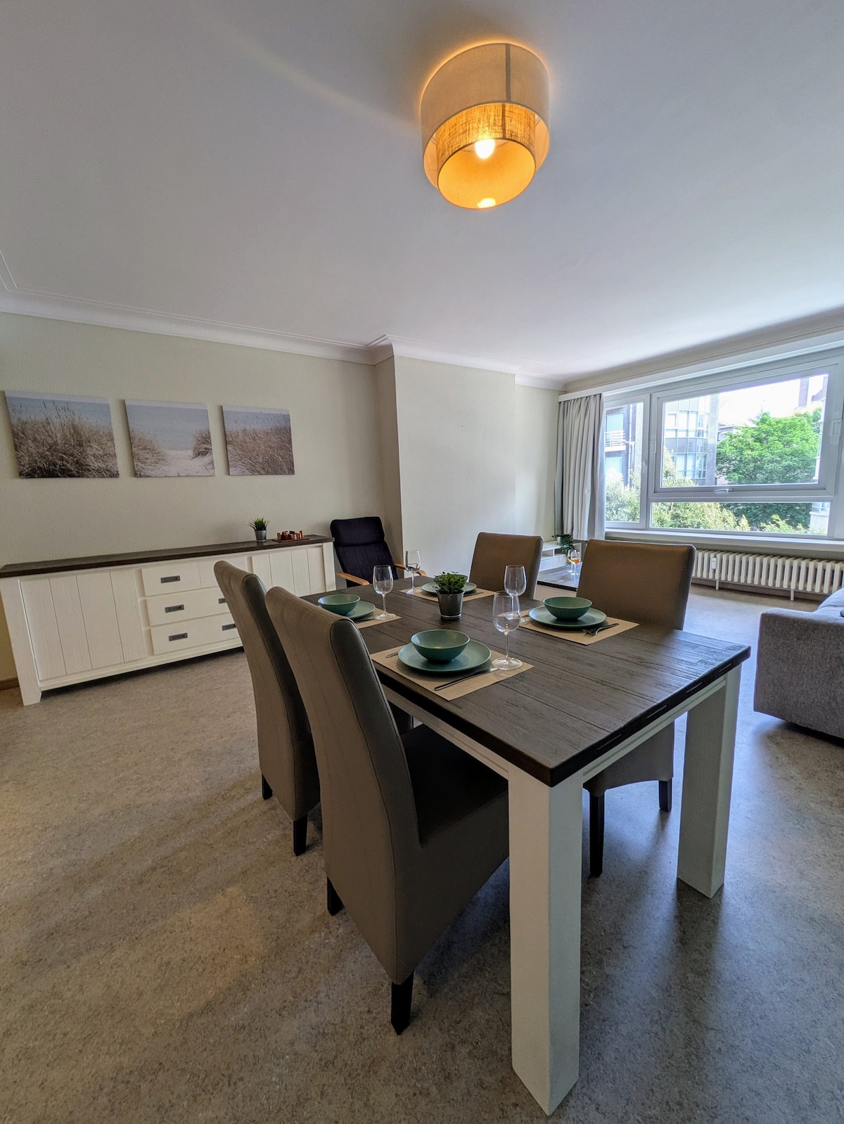 Beautifully completely renovated large apartment in the center of Ostend with sea view! The apartment is situated on the first floor. The living room has a beautiful sea view of the marina and the Klein Strand. The kitchen is new and fully equipped. The dining room is spacious for 6 adults. The bathroom is also completely new and equipped with a shower and spacious sink. And separated toilet.