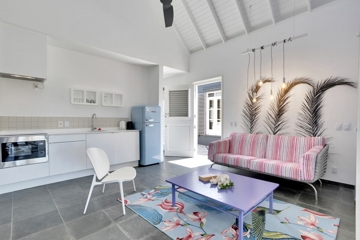 This charming studio with stylish decor is located in the heart of Rincon, a cute historic village in an inland valley. Heritage Design Inn locally known as Rose Inn is often booked by guests from nearby islands and travellers who prefer the uncomplicated atmosphere of a small village over the tourist fuss of Kralendijk. Rose Inn is newly renovated hotel style apartment with a farmhouse touch and love for detail. Gotomeer and Washington Park are nearby!