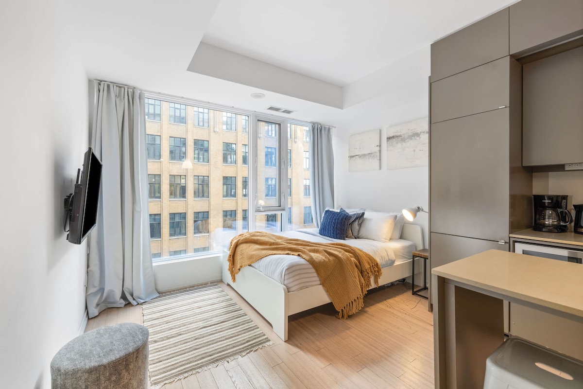 Stylish downtown Condo located in the vibrant heart of Toronto by Scotiabank Arena. Whether you’re here for a game, concert, or simply to explore the city’s energy. The condo is steps away from Rogers Centre, the CN Tower, Harbourfront, and top dining spots included. Home is fully equipped with all the essentials to make your stay stress-free. You’ll find a dedicated workspace for remote days, a fully stocked kitchen, and cozy living areas ideal for winding down.
