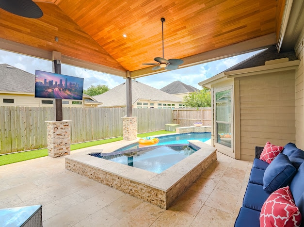 Escape to this private 3-acre retreat just outside Houston, featuring a resort-style pool with sunken bar, in-ground hot tub, outdoor kitchen, and basketball court. The Pool House sleeps 12 and is ideal for relaxing getaways or hosting events. Enjoy shared access to a stocked fishing pond and playground. With spacious indoor and outdoor areas, this home is perfect for entertaining family, friends, or groups. Book your Tomball stay today!