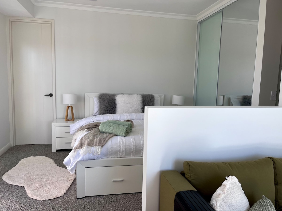 A fresh and modern coastal inspired space with large Master Bedroom - 2 walk in robes - Ensuite bathroom & toilet with your own Private lounge area. Wifi - Large TV - Netflix - Bar Fridge - Microwave - Toaster - Kettle and Dining essentials. The front of the House has a large locked barn door separating your space from the rest of the house for your privacy and is not shared space. Fresh Towels - Linen - Bottled water - tea & coffee supplied. Private Front Door access at all times.