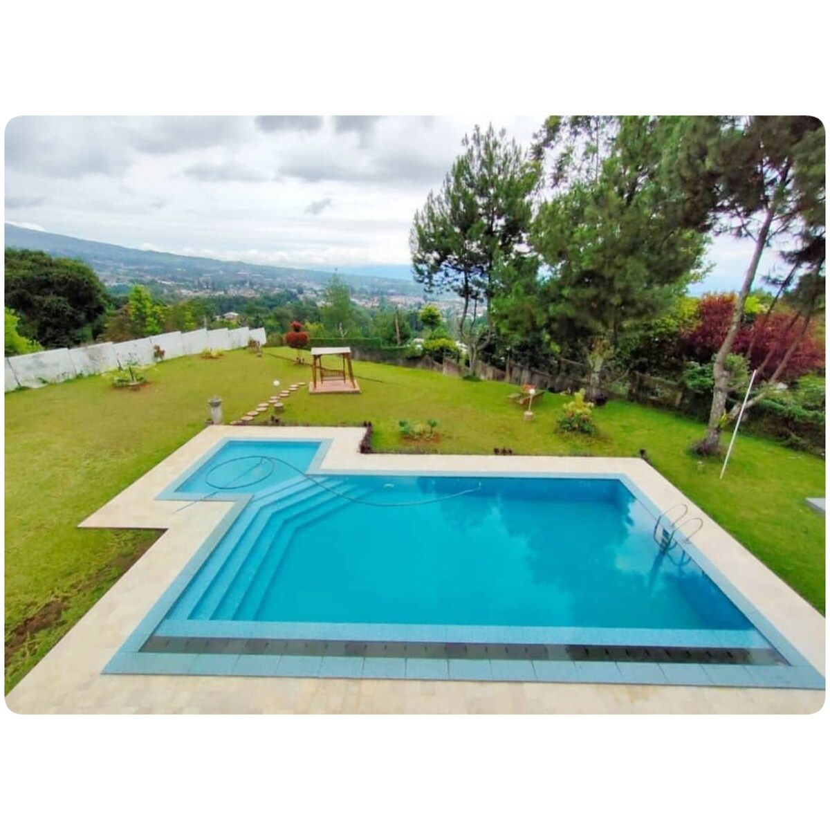 Villa dengan private pool, cocok untuk keluarga dan grup dengan pemandangan gunung yang tenang dan indah. Keluarga bisa bersantai di kolam renang pribadi, ada gazebo, mini bar outdoor serta ada ruang duduk santai. Villa ini memiliki akses ke Waterpark, tempat bermain anak indoor, restorant serta dekat dengan Jembatan Situgunung dan Air Terjun Situgunung. Nikmatilah suasana alam pegunungan yang indah dengan kolam renang pribadi.
