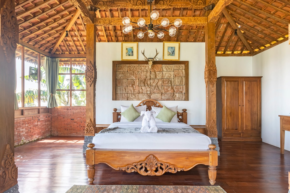 *WE HAVE AMAZING WIFI (50mbps ++) AND 4 BEAUTIFUL PROPERTIES ON SITE. CLICK ON MY PROFILE TO SEE THE OTHER 3 HOUSES IN CASE THIS ONE IS BUSY DURING YOUR DESIRED DATES* Have you ever slept in a work of art? From the artisans of Java to the farmers of northern Bali, this stunning 50-year old hand carved Gladak rests now in Sunset Sala. Made completely of teak wood, no nails were needed for the reconstruction of this unique home- its hand carved walls skilfully slotted together.