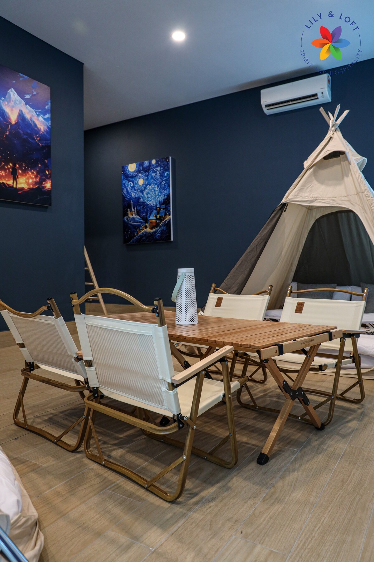 Enjoy the lovely setEscape to a romantic seaside glamping tent surrounded by nature. Enjoy the ocean breeze, cozy air-conditioned comfort, and peaceful nights under the stars — perfect for couples or families seeking a unique tropical getaway.ting of this romantic spot in nature.