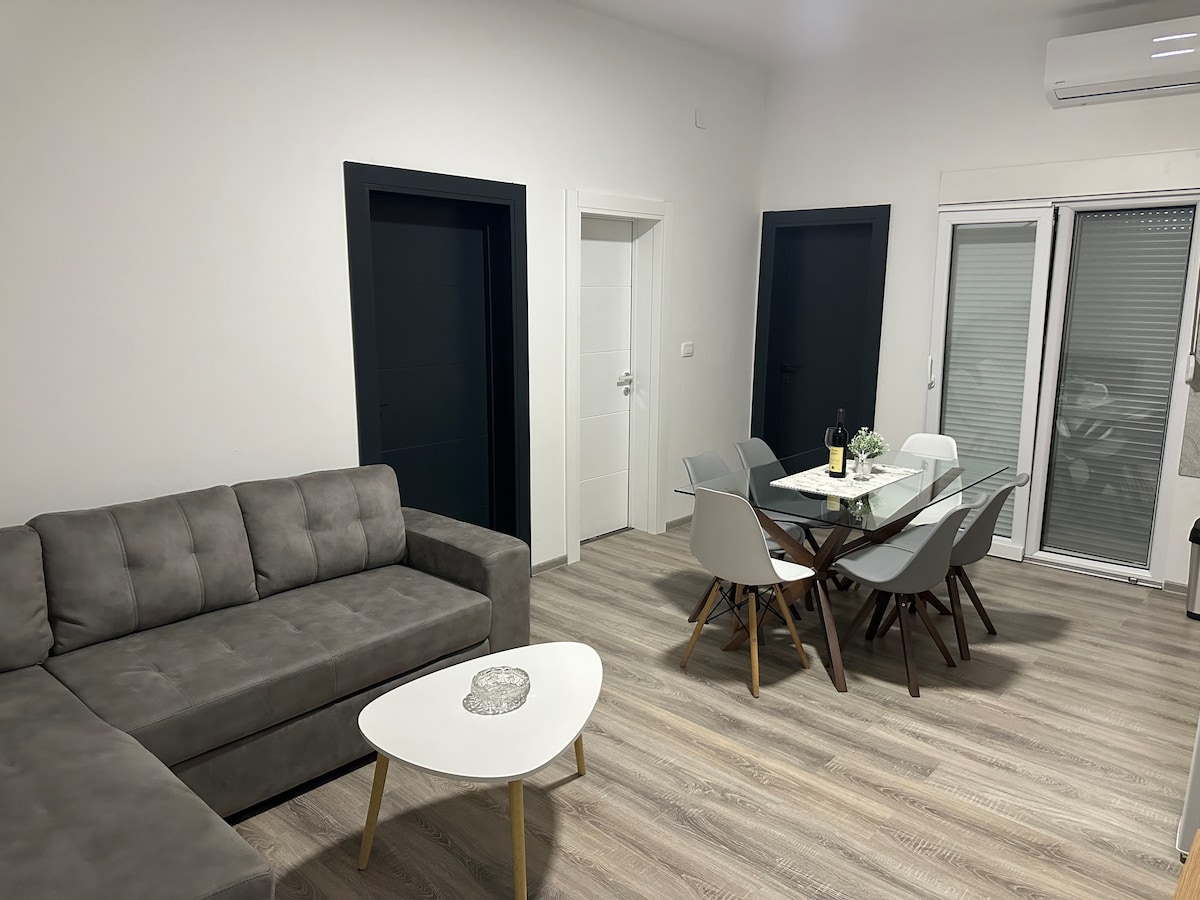 This beautiful, quiet, newly built apartment with air conditioning in every room and an amazing view of the sea is the perfect place to enjoy your visit to Bar! With charming furniture carefully designed to give it a homely and classic touch, you will truly enjoy your stay! Cleanliness is our specialty! It is located in a quiet street, 3 minutes' walk from the beach, shopping and attractions. Public transport is nearby so you can easily reach all the bar attractions