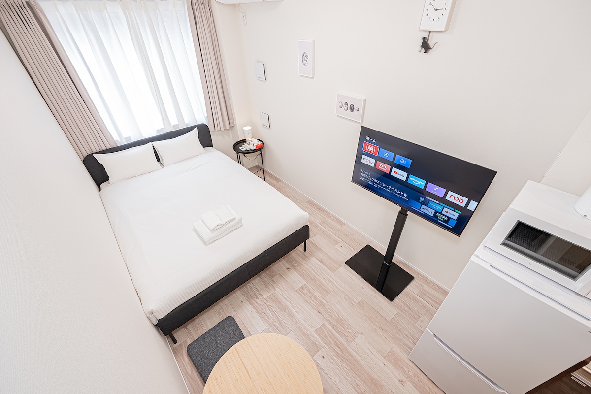 The apartment is located in Taito-ku, Tokyo. Taito-ku is one of Tokyo's oldest areas with an Edo vibe. There are three famous places here - Ueno, Asakusa and Akiba. Close to the University of Tokyo, Ueno Park and the Tokyo National Museum form a cultural center, with a strong cultural atmosphere. The apartment is located on Tokyo's most convenient JR Yamanote Line, at Yamanote Line Inogaya Station. 9 min walk from the apartment to the station. It is also a 7 min walk from Iriya Station on the Hibiya Line. 17 min walk from the apartment to Ueno Park, Tokyo International Museum, and Nippori Station. By JR line: 2 min directly to Ueno Station. 24 min directly to Shinjuku. 18 min directly to Ginza. 20 min directly to Akihabara. One stop to: Chengtian Sky Port, 53 min. Haneda Airport, 47 min. 22 min, Asakusa. 41 min, Disneyland. Room 102 has a 1.5m wide double bed (note that there is only one double bed, the website is currently showing an error) Notice: There is only one double bed in this room. 2 storage spaces Private bathroom with shower Private kitchenette. Broadband Washing machine Refrigerator Intercom Wireless smoke detector. First aid kit Indoor clothes drying rod, clothes rack High quality bedding