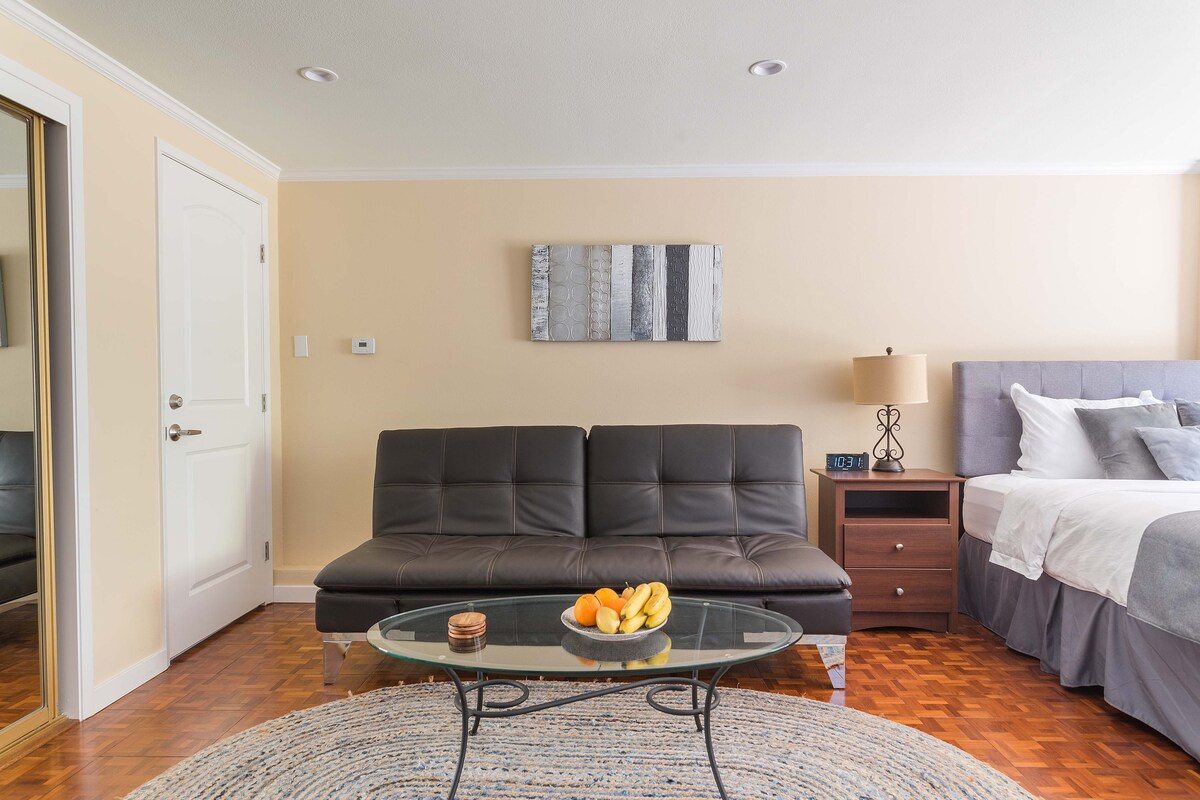 Unwind in our newly renovated, stylish studio - your own private retreat with no shared spaces. Enjoy a plush king bed, a fully equipped kitchen, and easy free street parking. Located in the friendly Sunset District, just a mile from Ocean Beach and Golden Gate Park, it’s ideal for couples, small families, festival-goers, and anyone visiting friends or family in SF or the Valley.