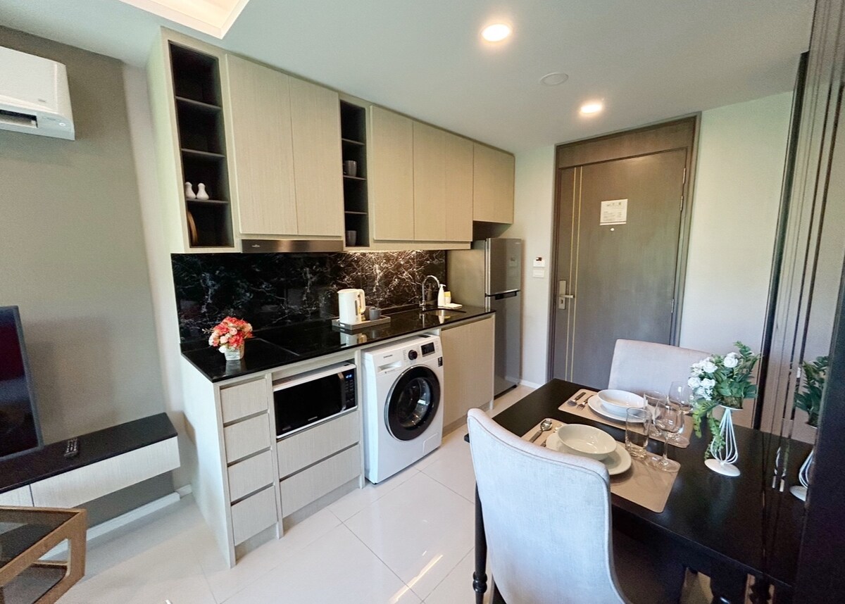 in the condo, in which the apartments are located, everything you need for a comfortable stay. for example, each building has its own panoramic swimming pool on the roof, there are also 2 gyms on the territory. one gym is located near the building where this wonderful apartment is located. moreover, there is a children's room and a restaurant. There are also outdoor pools and a children's water slide. Please note that for stays over 28 nights, electricity and water are charged separately.