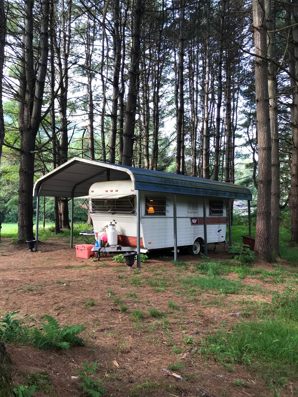 Come experience luxury camping at it's finest in rural Pennsylvania. A 38' luxury travel trailer set near Little Roaring Creek is as peaceful as it gets. The camper has all the accommodations of home with a spacious sized living area, kitchen, bedroom and bathroom. Outdoors guest have access to their own fire pit, picnic table & both gas/charcoal grills which is all in close proximity to the creek. Our guest can be sure to experience an amazing time at our Family "Ponderosa".