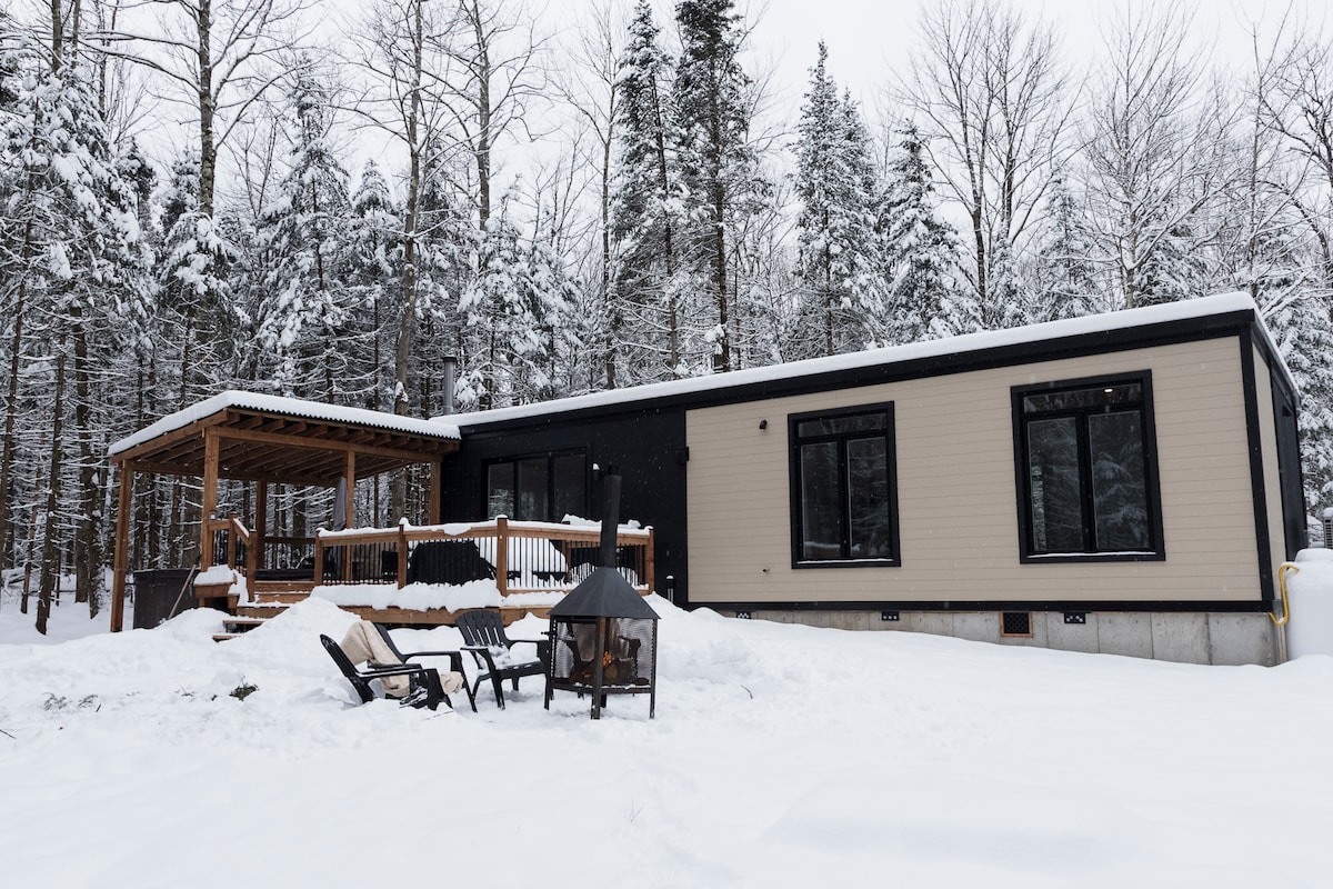 Welcome to Chalet Tri Boisé, a warm, fully wood-finished chalet, perfect for a nature getaway with a private hot tub and outdoor fire pit. Accommodates up to 10 guests: • Open-concept living area with gas fireplace • Fully equipped kitchen with induction cooktop and Keurig coffee machine • Private movie room • Mezzanine with hammock-style net • Dedicated workspace • Family-friendly amenities Modern comfort and nature combined for a memorable stay in Estrie. CITQ: 308466