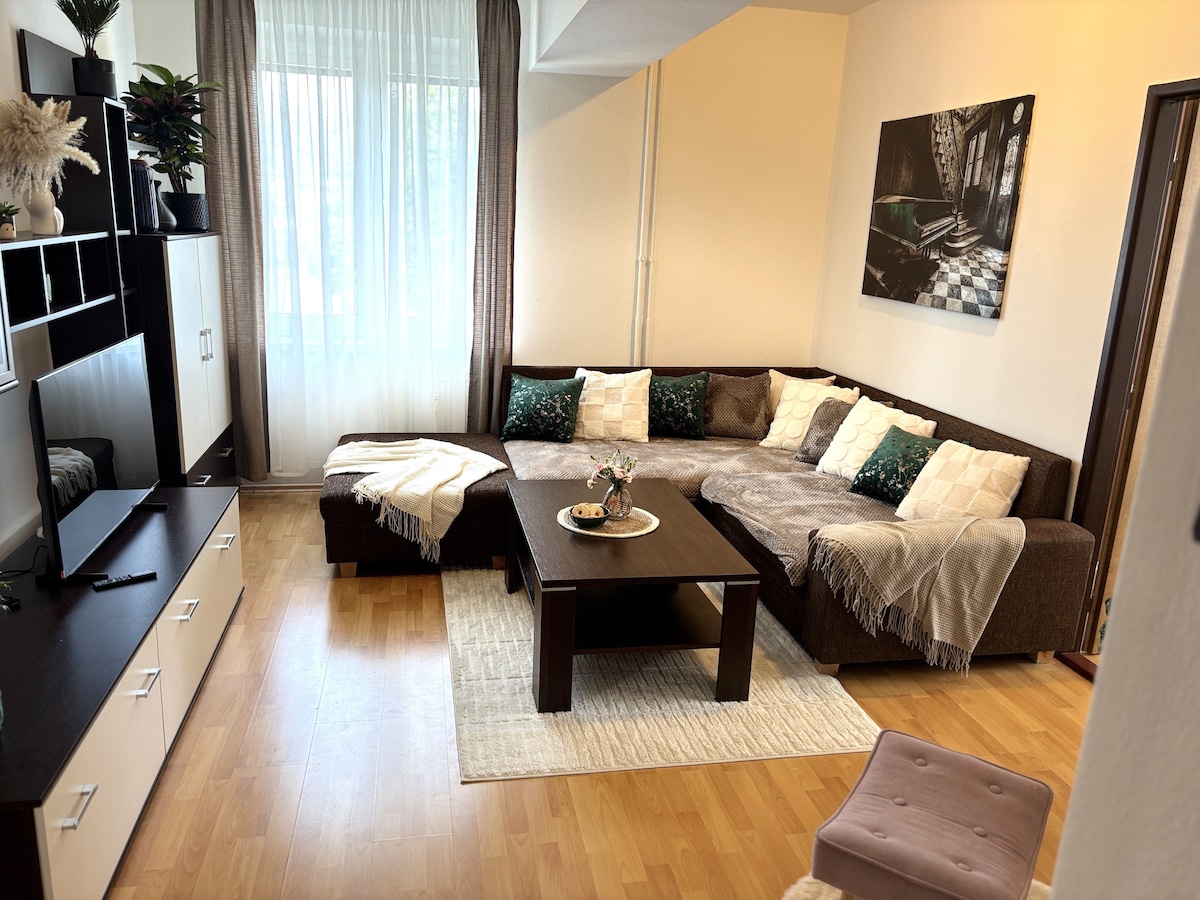 Modern 2-room apartment (54 m²) in the heart of Poprad. Spacious living room with pull-out sofa and flat-screen TV with SkyShowtime, fully equipped kitchen, cozy bedroom with plenty of storage and balcony access, and modern bathroom with bathtub. Self check-in for flexible arrival, Free WiFi, Free parking available. A quiet apartment in a central location. Shops, restaurants, and cafés just steps away. Aquacity aquapark 750 m away. Train station with access to the High Tatras a 10-minute walk.