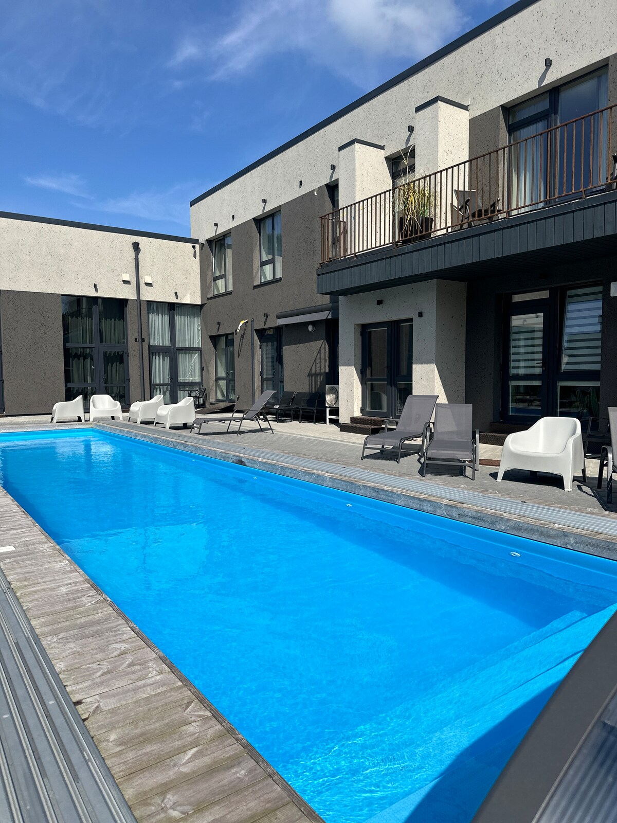 Stay in a stylish, modern loft in a quiet location in Palanga. Just 2.5 km from the city center and the main J. Basanavičiaus street. You can enjoy water activities not only by the sea, but also in the private pool in the loft yard. Perfect choice for a quiet rest close to all the entertainment.