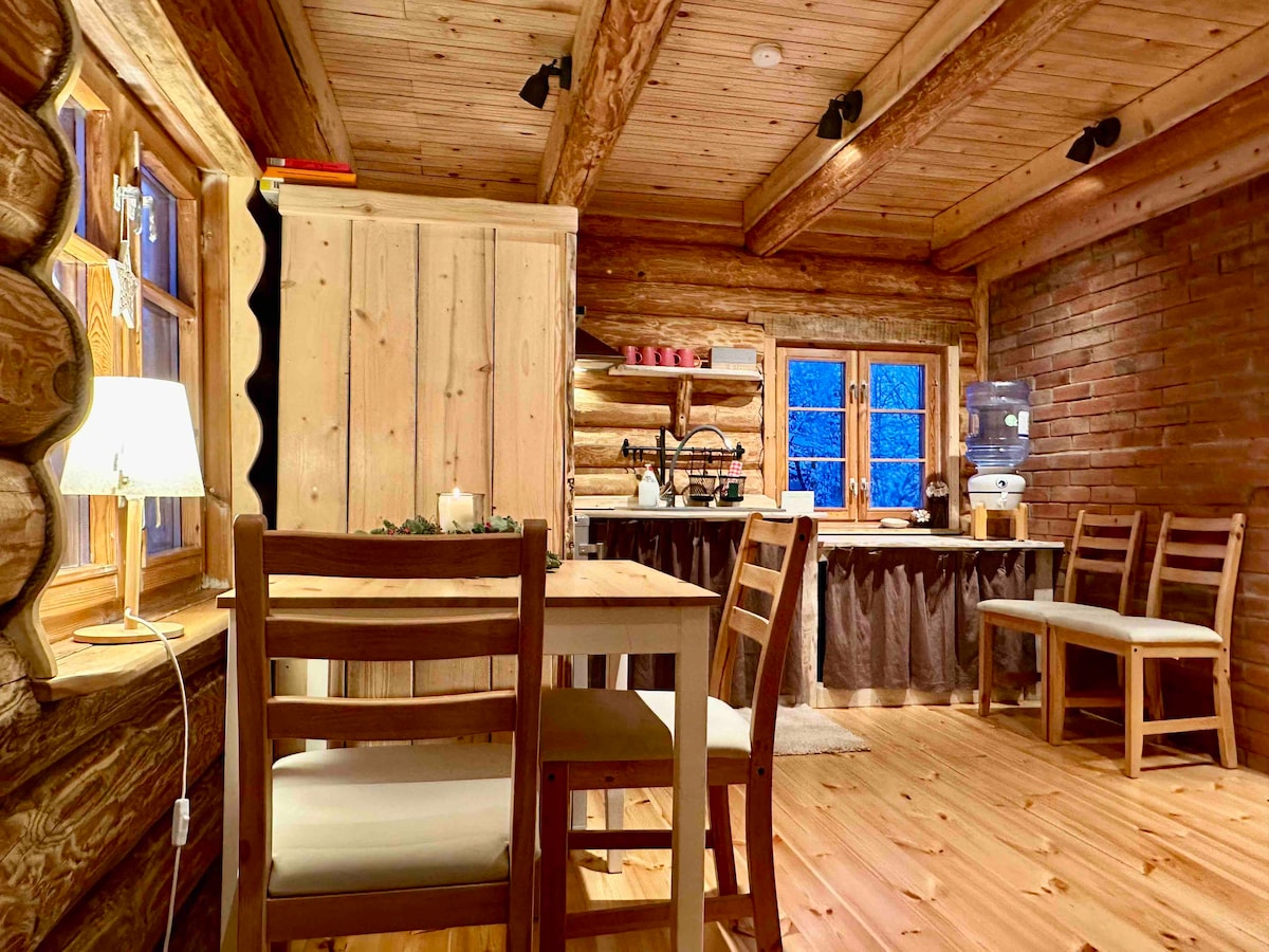 Welcome to your dream getaway nestled in the heart of the forest! This charming small house offers a unique bathtub located right in the living room, where you can soak in the warmth while enjoying the view of the forest through the windows. Step outside to find a small sauna with a stunning glass wall. It's the perfect spot to relax after a day of exploring the woods. Sauna requires preparation and it is additional service to be requested for a fee.