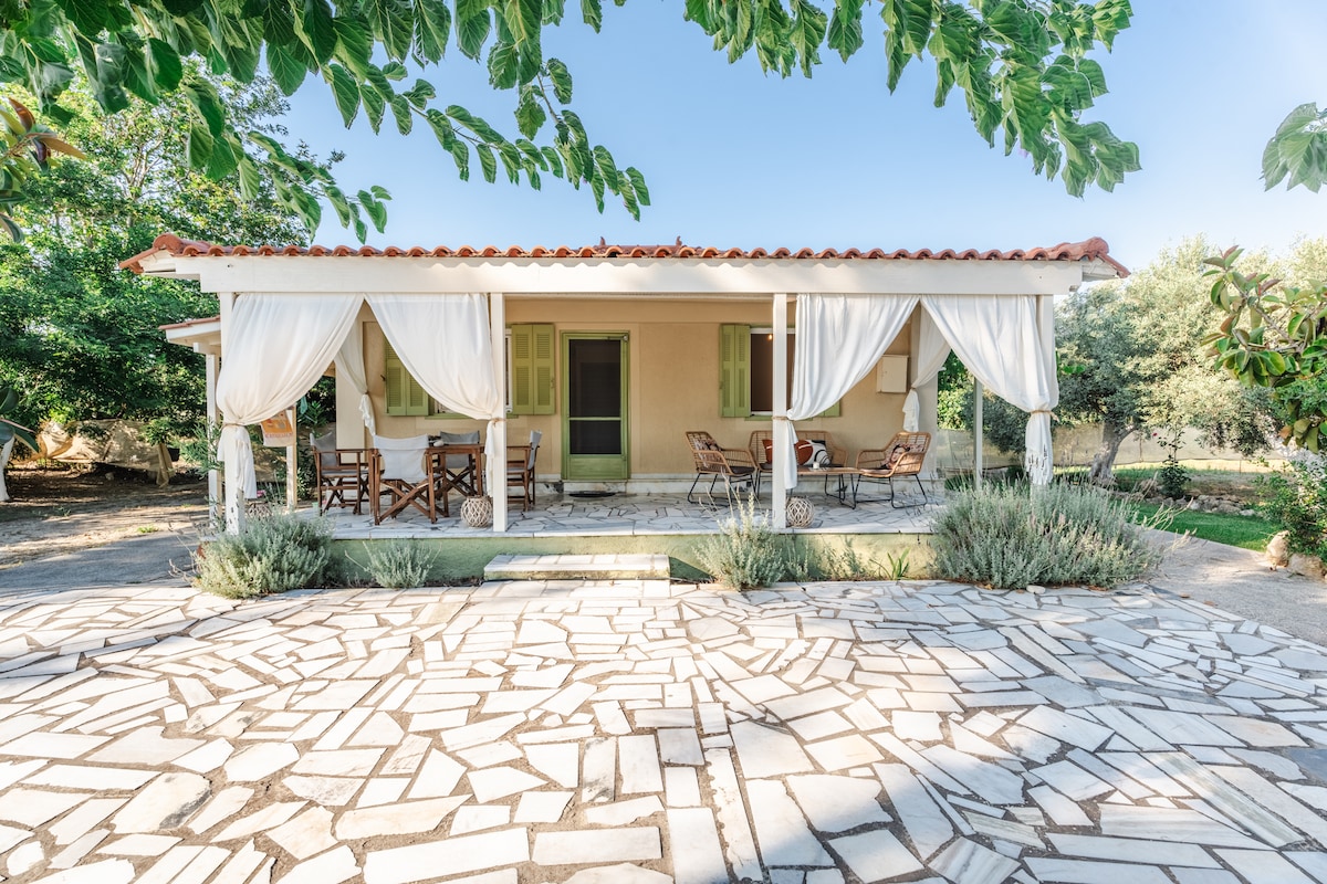 Our tiny, traditional house, hand-built in 1924, consists of a kitchen and bathroom downstairs (19 sq.m) and a double bedroom upstairs (16 sq.m) as well as a big and lovely terrace. It is located in the traditional village of Svoronata, less than a mile from the airport (0.9 mi), Ammes beach (0.5 mi) and many other beautiful coasts. Please also read the "other things to note" section to learn about our Covid-19 safety measures and how we aim to provide a clean and safe place to our guests.