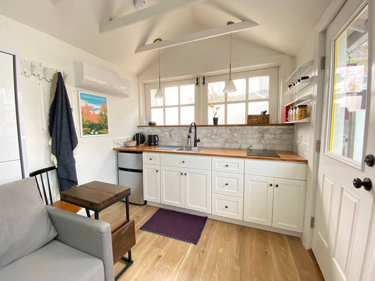 Come stay at our magical tiny house with a yellow door! A lovely retreat tucked away with an equally magical garden. Our tiny was built for family and dear friends to come and enjoy Providence, and all the surrounding wonders. When it’s not shared with our family and friends we open it up here. It’s what Airbnb was when it first started, just regular folks opening up their spaces for people who love traveling and exploring or who might be curious about tiny house living.