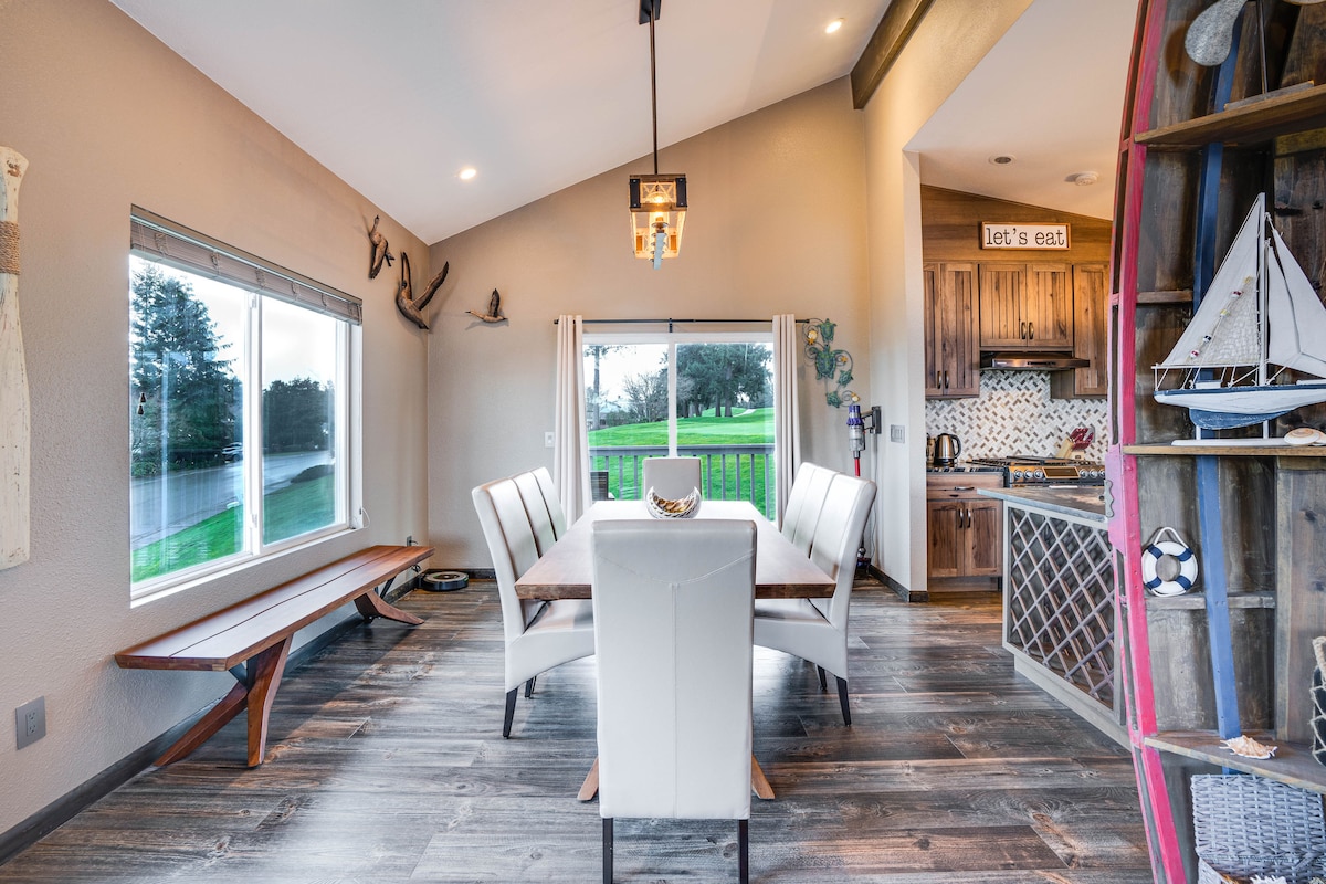 A stunning and newly remodeled home south of Seattle. Vaulted ceilings, nautical decor, to create cozy experience. We bring the beach to you in our coastal inspired home. The house is a lovingly cared for home in a quiet neighborhood. Natural furnishings combined with ocean accents invoke eternal summer days on the seashore. From our windows and the front patio you'll relish watching the beautiful sunsets over the Puget Sound, as wells as golfers from the back porch. You won't want to leave!