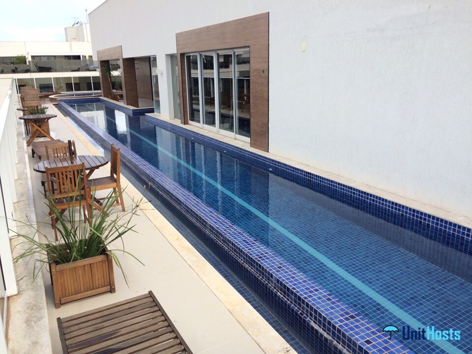 Tranquilo para trabalhar e descansar. A 9min do aeroporto, 4km do lago Paranoá e ao lado do Casa Park e Park Shopping. Estrutura 4 estrelas com 4 piscinas (semi-olímpica é aquecida) sauna e academia. Business center, recepção e restaurante são 24h. Apto tem microondas, fogão, frigobar, filtro de água, cafeteira, panelas, liquidificador, sanduicheira e utensílios. Banheiro tem secador de cabelos e barra de segurança. Cobertor extra, ferro e tábua ficam no armário. Wi-Fi muito bom e a Tv é Smart.