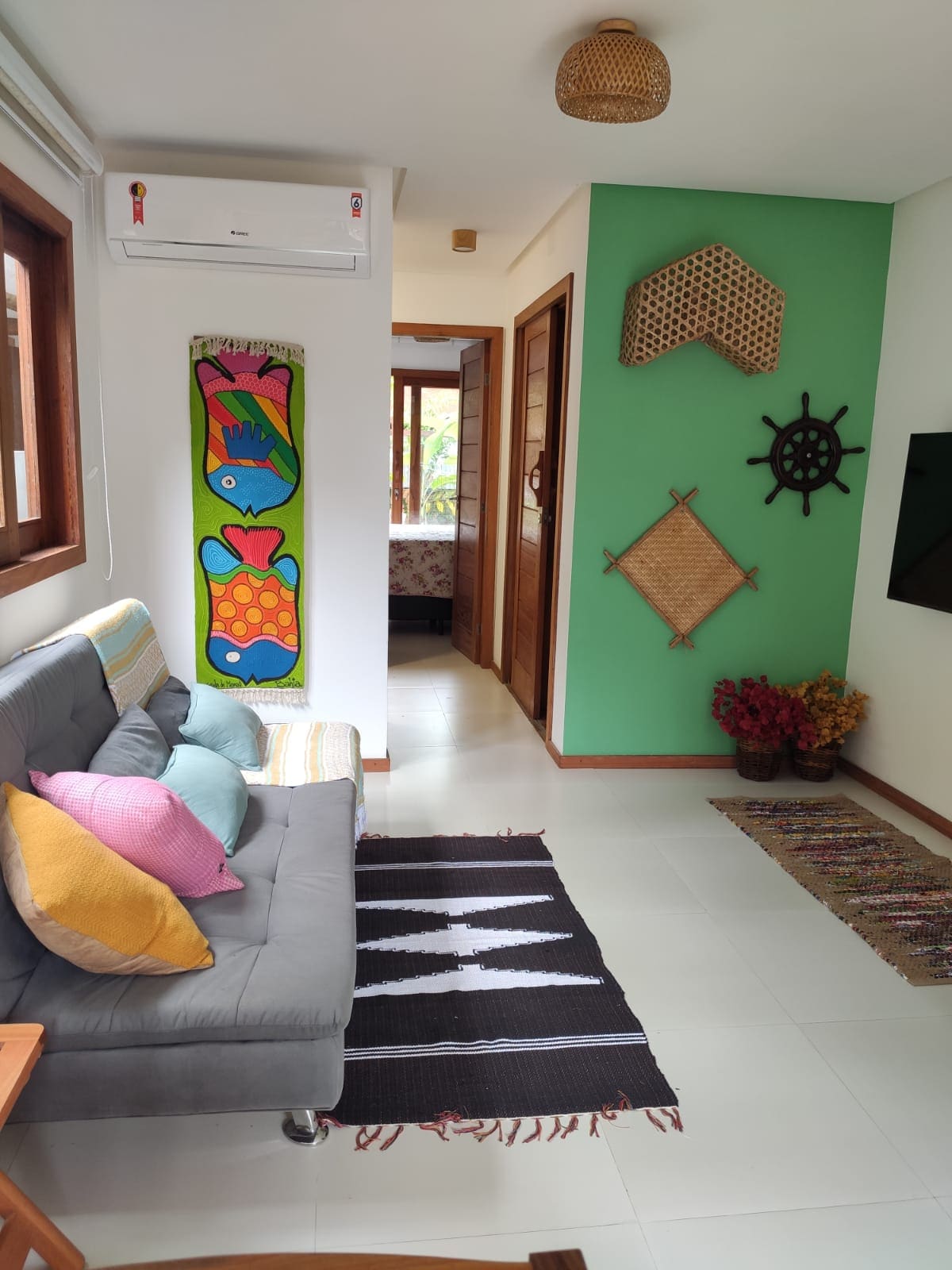 Come and rest in this beautiful and comfortable apartment with 02 suites in Ponta do Mutá, with private access to the beach, during the best sunset in Bahia. First floor, in a gated condominium, consisting of 02 suites, and a guest bathroom, kitchen, living room and incorporated balcony. Quiet and pleasant environment. We have 02 internets, 01 from a local company and 01 via Starlink satellite for backup. Accommodates 6 adults and 2 children up to 12 years old.