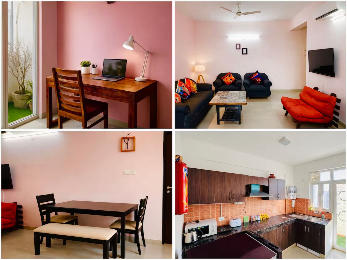 Welcome to your luxurious home in Agra! This beautifully designed 3-bedroom apartment is just minutes from the iconic Taj Mahal, offering the perfect blend of modern comfort, and convenience. The Space Step into a world of sophistication. Our apartment features a thoughtfully curated aesthetic with clean lines, warm textures, and world-class amenities. Whether you're a solo traveler, a couple, or a family, this space is designed to provide a peaceful retreat after a day of exploring Agra.